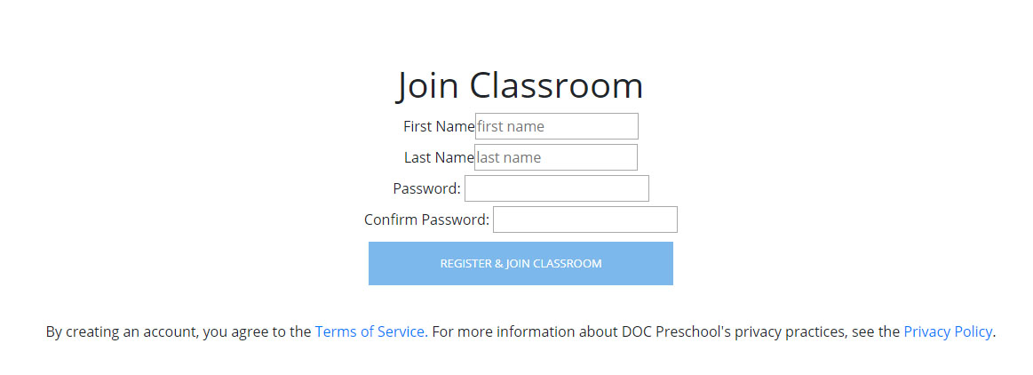 Congratulations! You’ve now created your DOC Preschool account. You will now